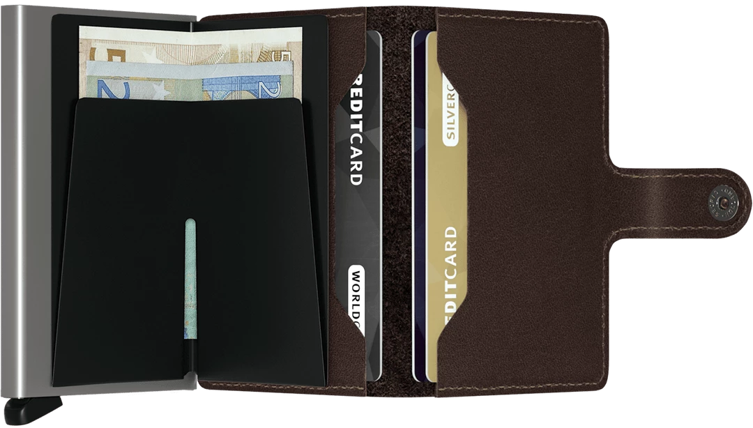 The patented mechanism allows you to slide out your cards with one simple motion, ready for immediate use. The aluminium protects from bending, breaking and unwanted wireless communication.