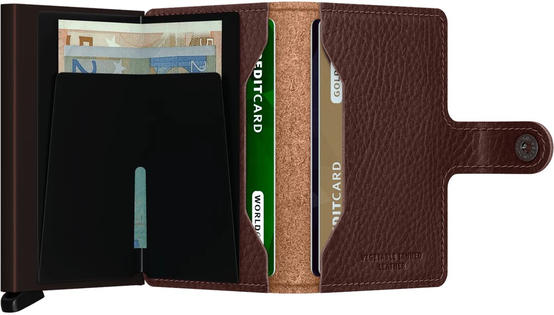 Miniwallet Veg Espresso-Brown is vegetable-tanned full-grain leather, made in Italy from European cowhide. For more information on leather characteristics, our production process or care instructions, visit our leather page.