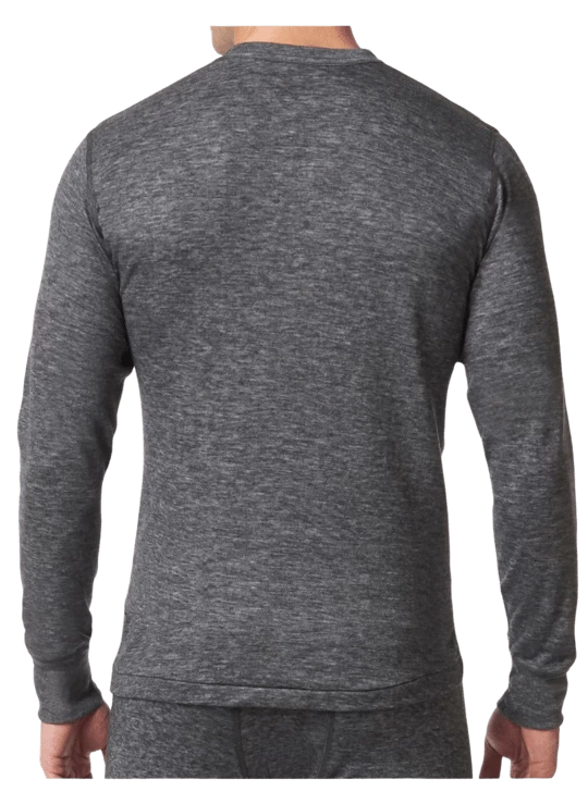 This wool blend shirt is made from a unique 2 layer jersey knit fabric that offers you the ultimate in warmth and comfort. The inner layer is a blend of 50% cotton and 50% polyester for absorbency and softness next to the skin. The outer layer is a blend of 50% merino wool and 50% polyester that offers you warmth and strength. The space between layers acts as an insulating layer trapping warm air from your body. The combination gives you one of the warmest garments you can put next to your skin.