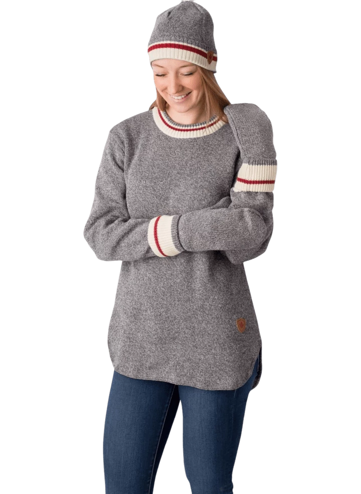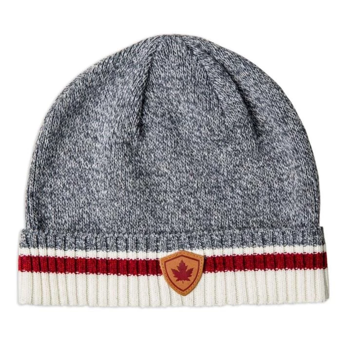 Sweater knit toque with turn up cuff and sock stripe edge.Â