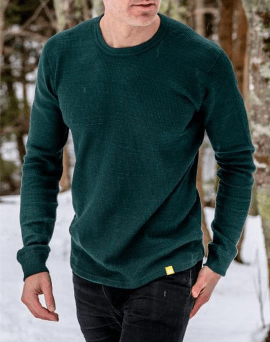 Classic waffle knit is engineered for warmth – the waffle “pockets” trap warm air which is used to insulate the body. This is a staple in our seasonless assortment; it’s the perfect single layer for cool summer evening or layering piece for colder winter temperatures.