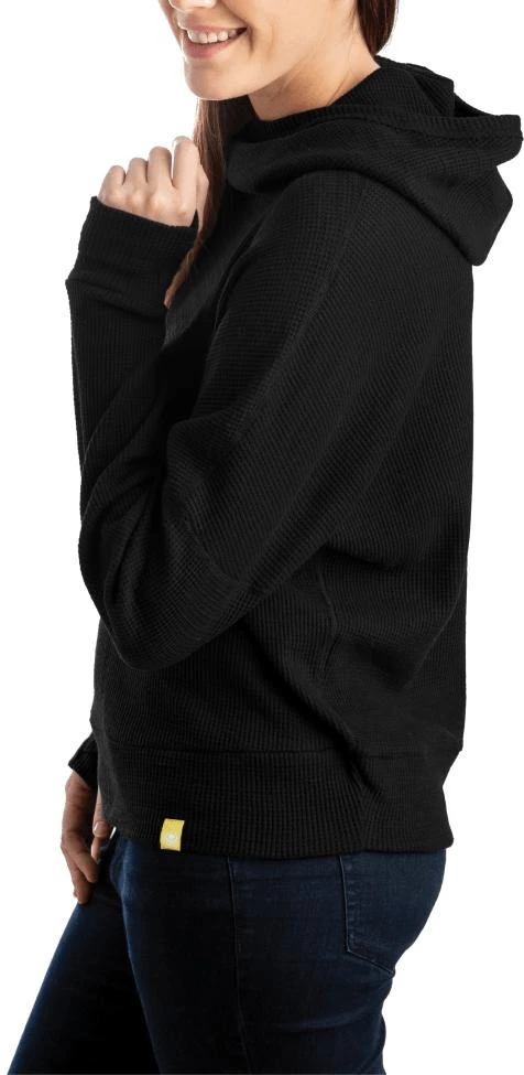 The cozy fabric and relaxed styling will make this top a staple in your line-up. Waffle knit is our most traditional winter fabric so we thought it would be the perfect compliment to our knit top line. The slub yarn adds texture and colour depth and then we nap the fabric face to make it really soft.