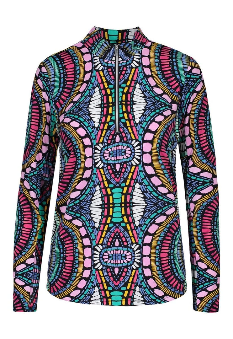 Tribal Long Sleeve Mock Neck Top