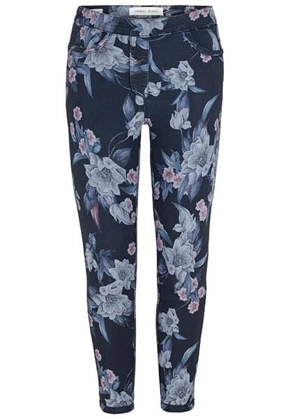 Double duty denim is the best way to describe these 2-in-1 jeggings! These pull-on ankle bottoms can be worn as dark blue jeans or reverse them to show-off a fall floral print.