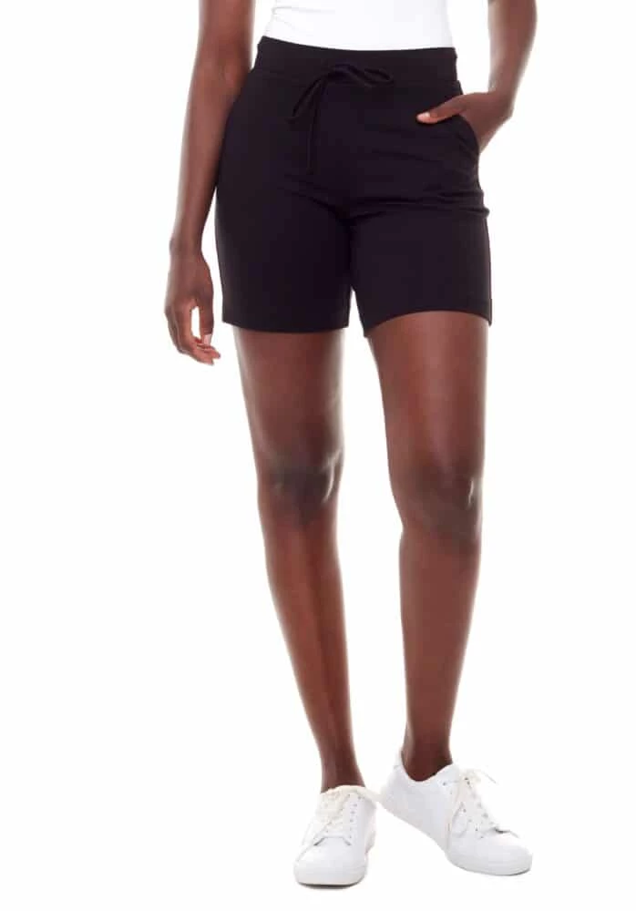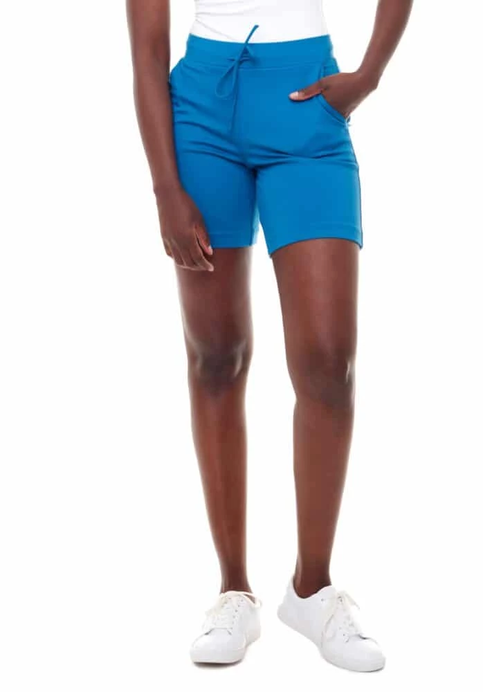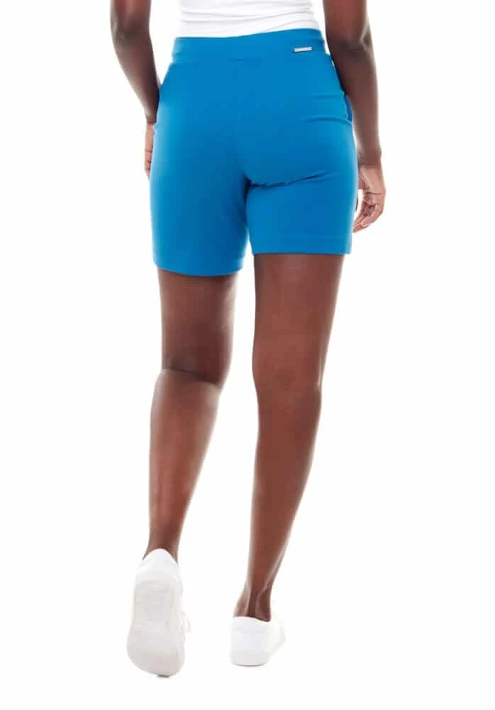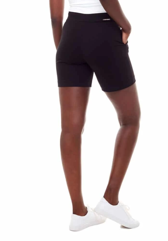 The Sophia Jogger Short is a loungewear staple that can be worn from the gym to the weekend and beyond. The vibe is laid-back and easygoing, with a comfortable elastic drawstring waistband and a roomy yet slim silhouette. This piece is as light and breathable as it is chic, thanks to its construction in a super-soft lightweight Ponte di Roma fabric. A great choice for casual, off-duty days, but also elegant enough for a night out. This one is an effortless basic that will definitely be on heavy rotation this summer, and it comes in classic black and a gorgeous deep sapphire.