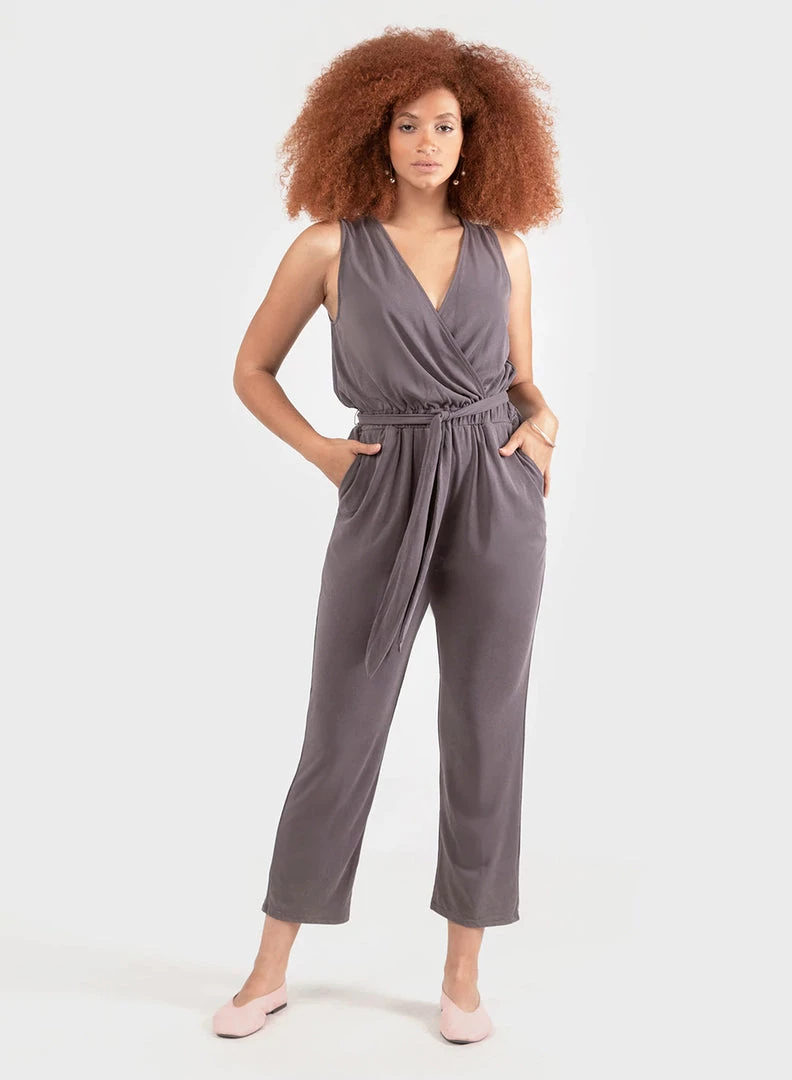Women Dex Sueded Jersey Belted Wrap Jumpsuit