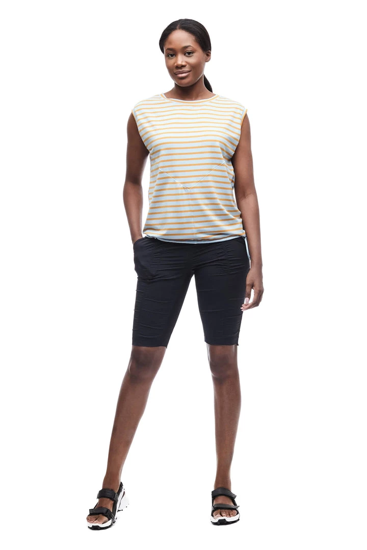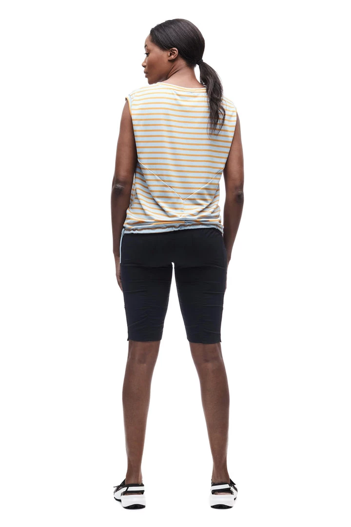 The GOMA sleeveless top is made from fabric containing Lyocell, a fibre made of wood cellulosic obtained from sustainable forests. Partially eco-friendly, drirelease® Lyocell ensures long-term fabric performance and maintains its softness after wash. It has moisture-wicking and fast drying properties, which minimizes odors and maximizes comfort and has a UPF rating 30+. These features make this top versatile, great for travel and various outdoor activities.