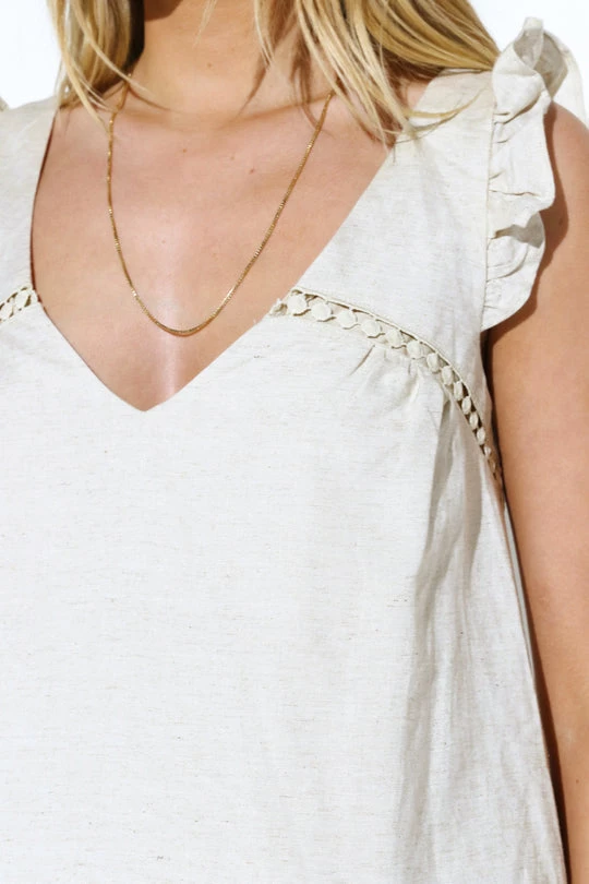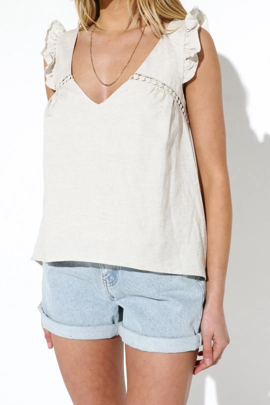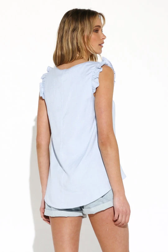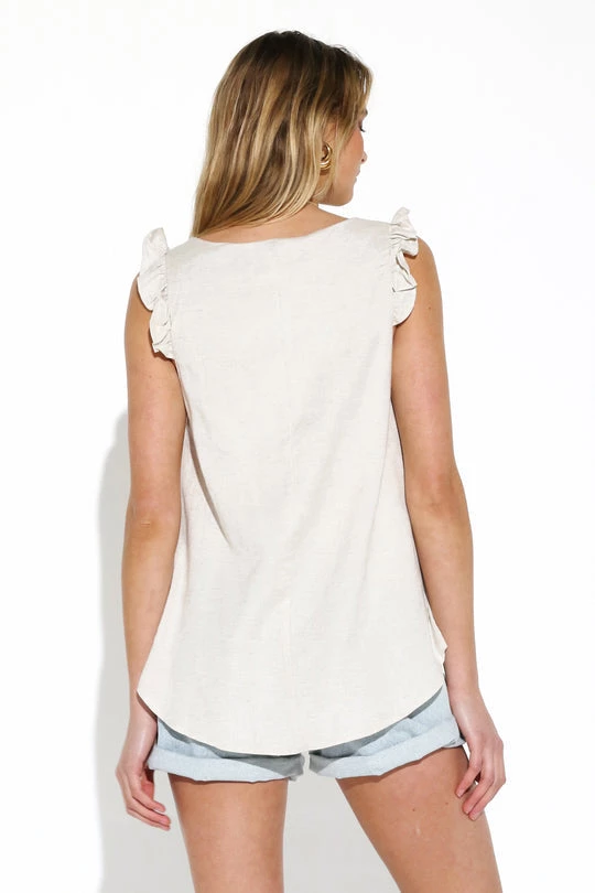 Don’t worry what you should wear, the Anya Sleeveless Ruffle Top is here to bring the chic! Pair with denim for a cute summer look!