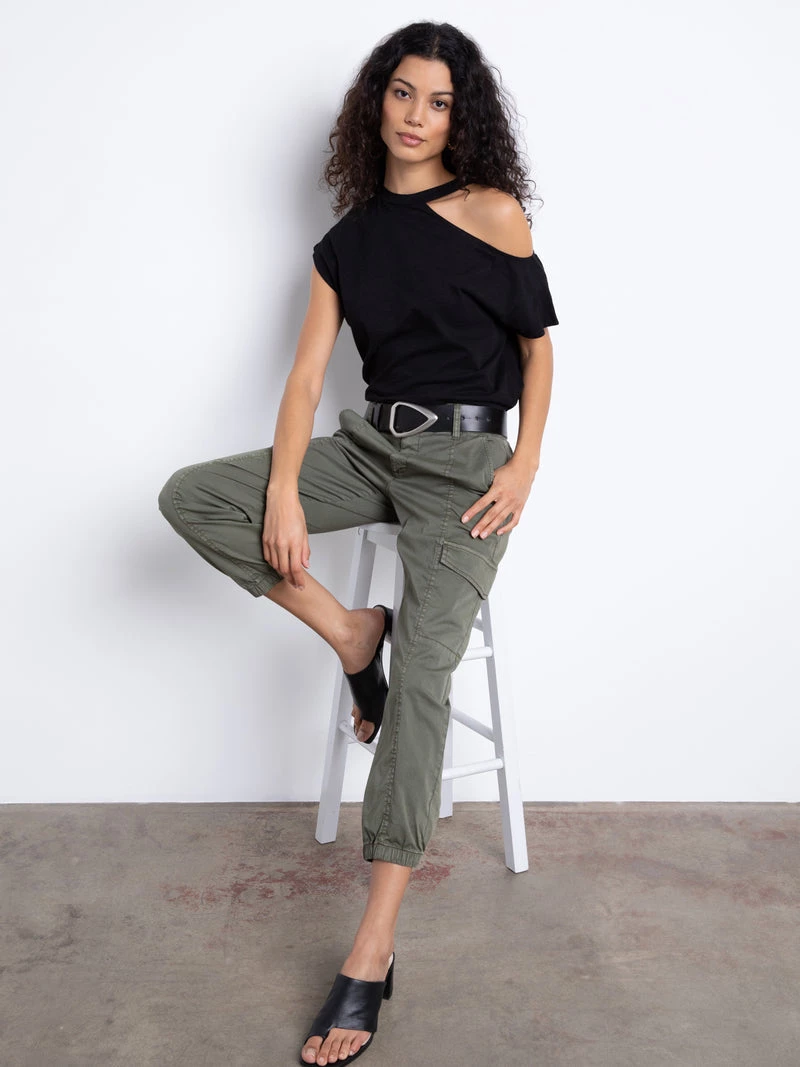 Make any day a stylish mission in our utility pants, complete with military-inspired pockets and elasticized cuffs.