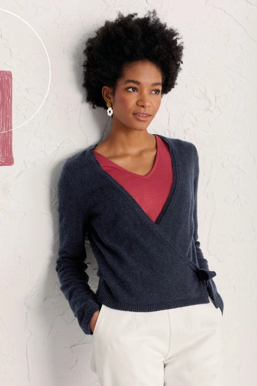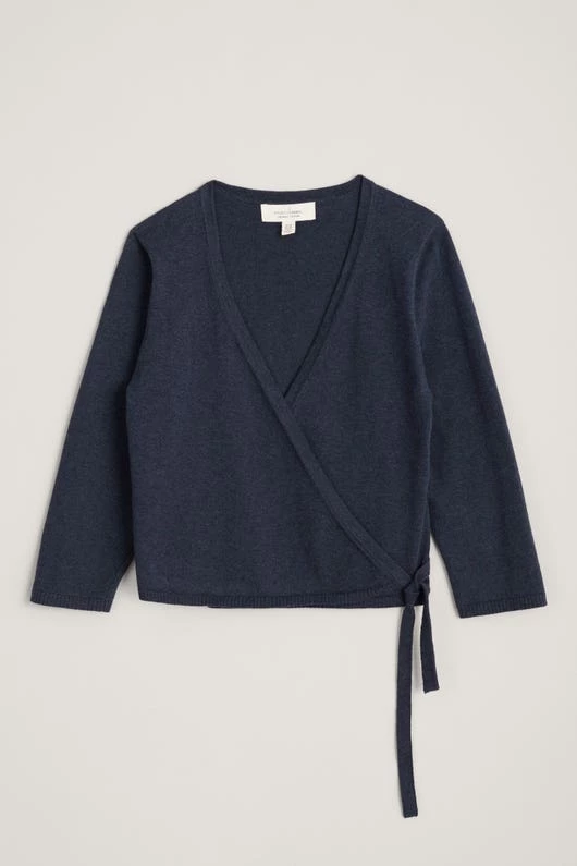 We’ll layer this fitting wrap cardigan made of organic cotton over gorgeous dresses or match it with a pristine white T-shirt and 3/4-length-sleeved culottes for the ultimate summer coverage. A button on the inside and a self-tie at the waist fasten this lightweight knit.