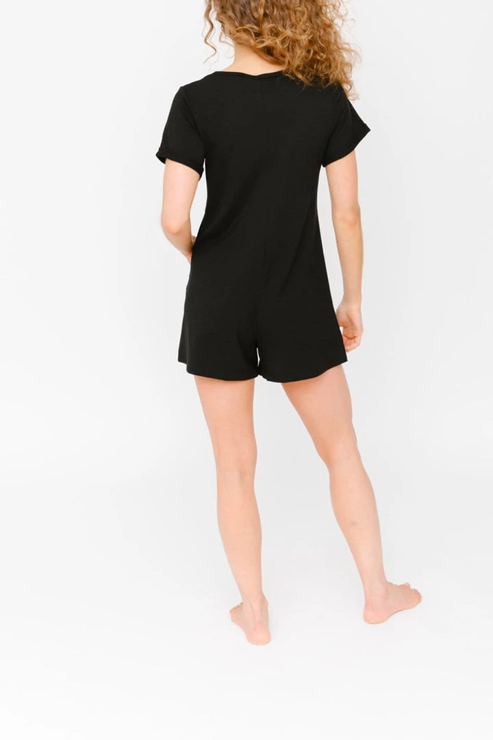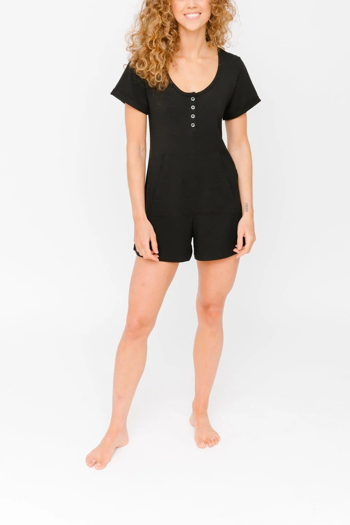 Available in our signature Rayon from bamboo and cotton blend, this adorable Romper comes in classic Midnight Black, and NEW Cotton Candy Sky Tie Dye. With a scooped neck, rolled sleeve, and shorter legs designed to avoid any crotch riding scenarios because that’s… well… super annoying. We feel you.