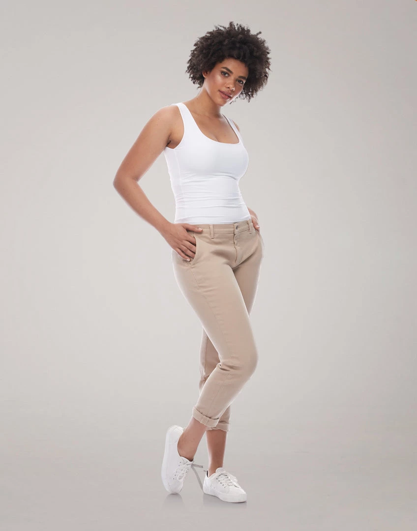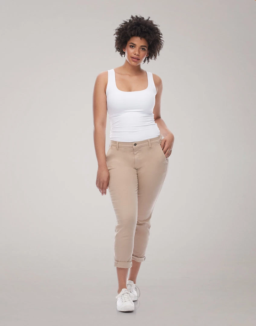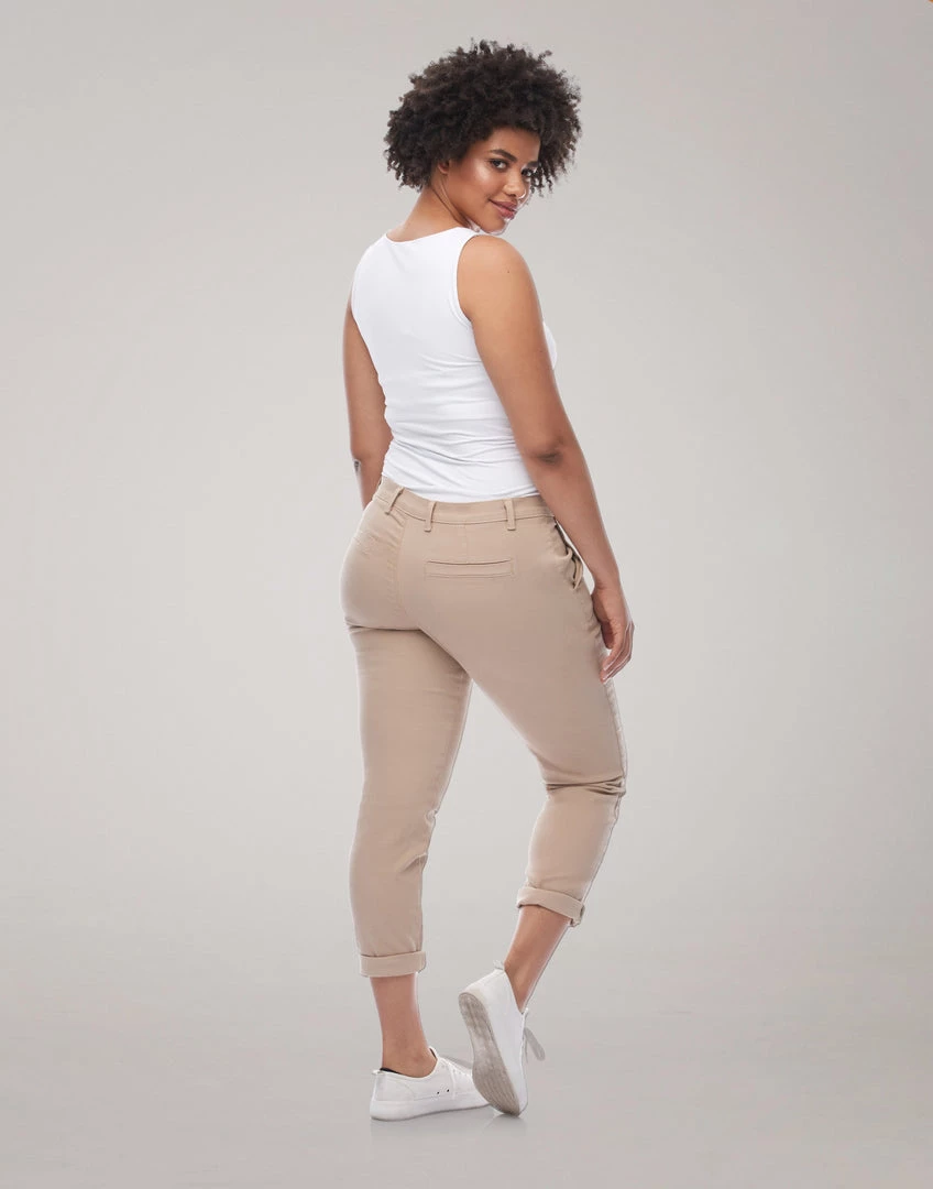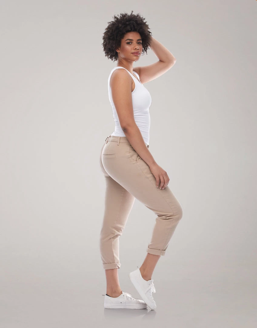 Malia, is our girlfriend jeans, a relaxed fit with a tapered leg. Made of a stretch denim fabric, this jean is designed to move with you while keeping its shape.