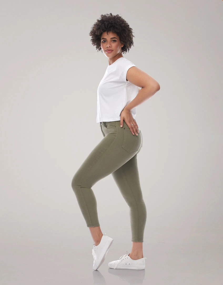 Rachel, is our skinny jeans silhouette, fitted at the hip and ankle and is worn very close to the body creating a figure flattering fit for all body types. This lightweight jean is made of super soft material.