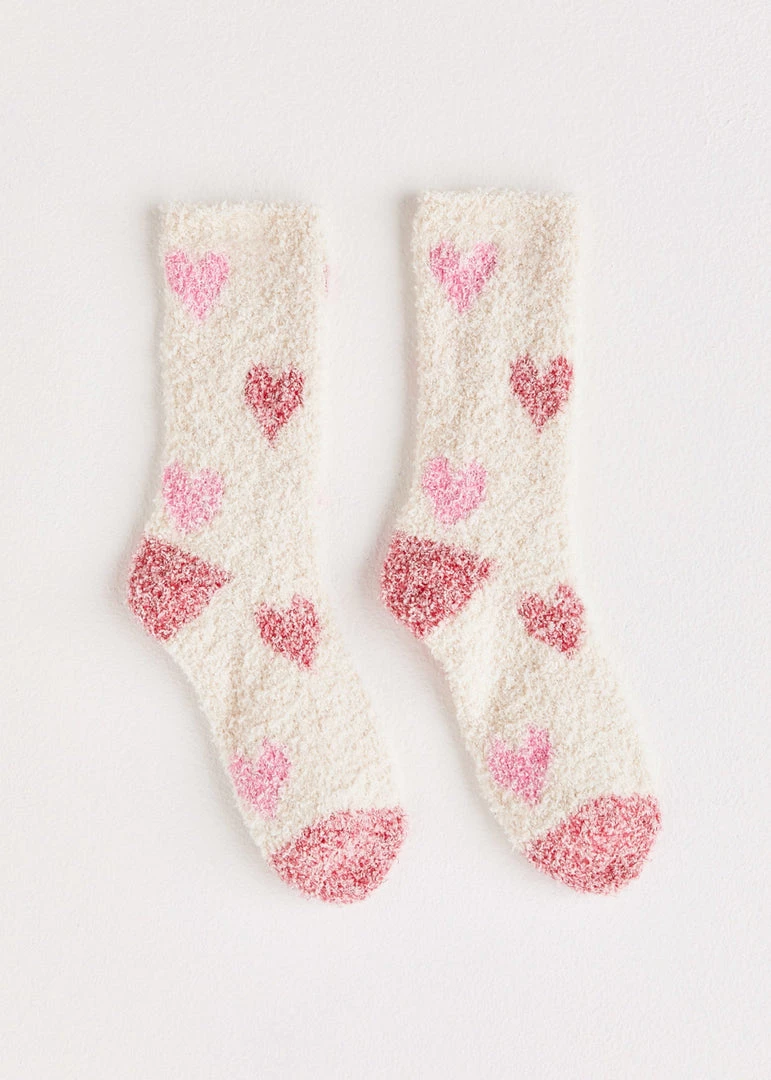 Even feet need a little love! These plush socks have been a hit, so they brought them back in a cute heart print!