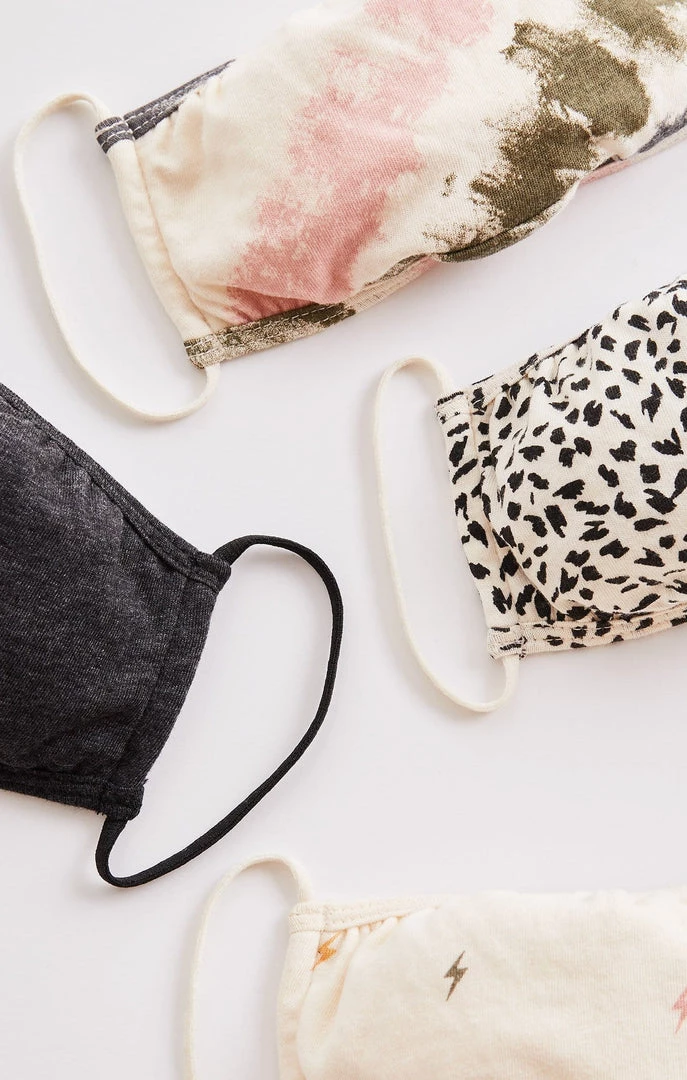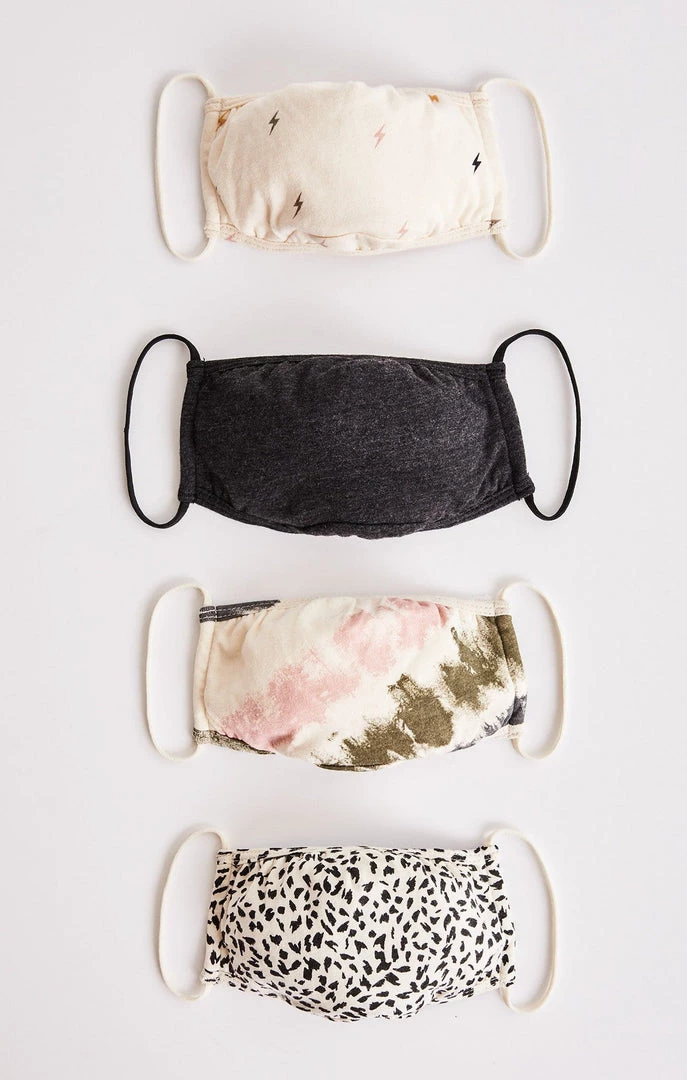 Fun prints for the season! Our reusable, machine washable face masks have become a style staple for us. Our Bolt & Tie-Dye Face Mask (4-Pack) features four fun new styles: Mini Bolt, Black, Bone Dip Dye Print, and Bone Mini Leopard print. Our 4-packs offer even more ways to mix and match!