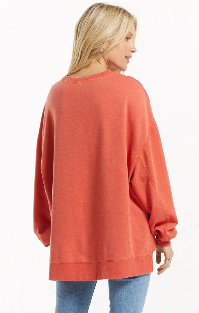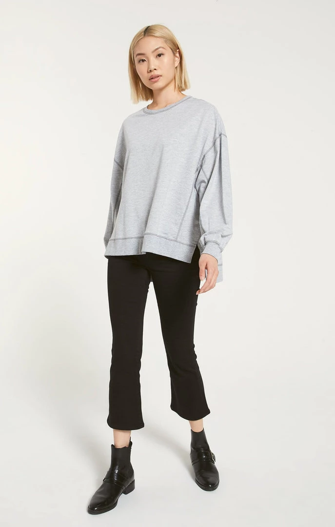 The Weekender goes modern. One of our most popular silhouettes, made from our Baby French Terry knit fabric, features a crewneck design and oversized fit with exaggerated slits at each side. We’ve given this relaxed pullover our signature burnout treatment, which means it will age uniquely over time. The Modern Weekender has a familiar sweatshirt feel with a hi-low hem and ribbed detailing at the sleeve cuffs and bottom band. The ultimate pull-on style for any occasion, this top will become a season staple.