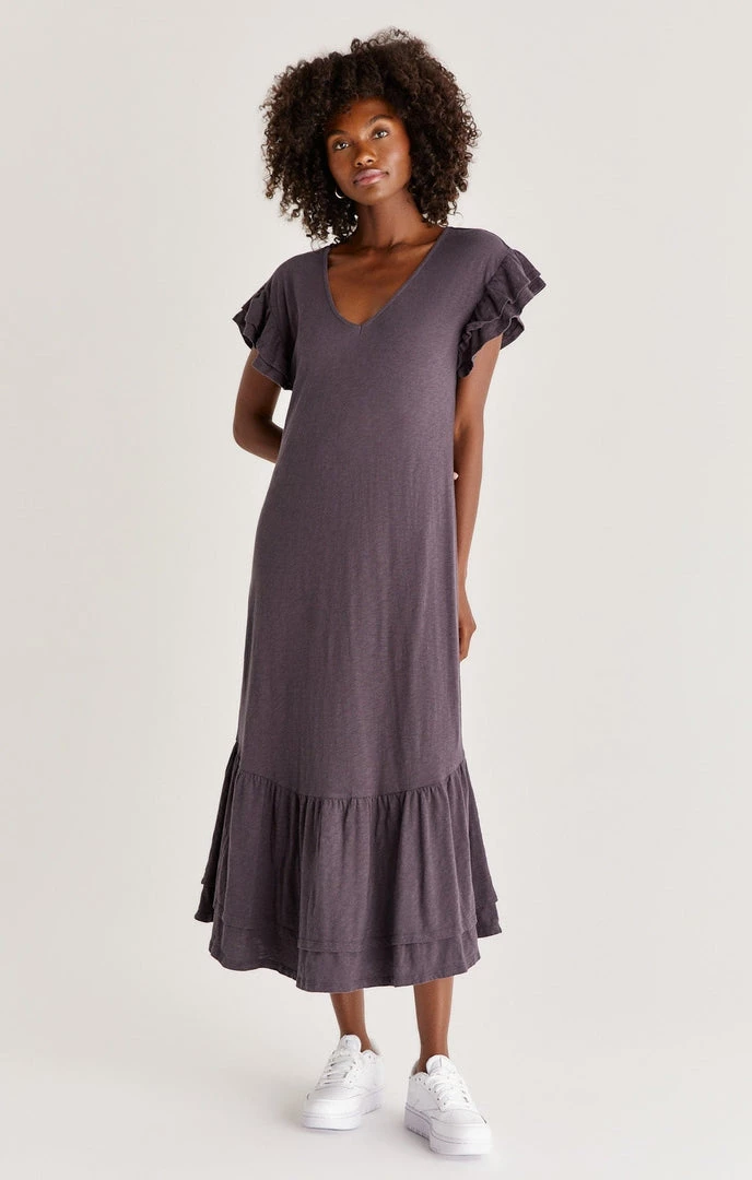 Ruffles add a little flair to any outfit! A little ruffle here and there adds a fun twist to this dress. The Zella Cotton Slub Midi Dress is a lightweight option that is perfect for warm weather.